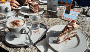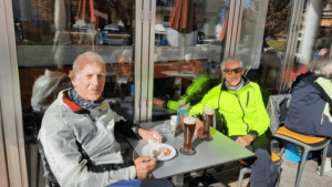 Dort kehrten wir in einem gemütlichen Café ein und stärkten uns bei Kaffee und Kuchen. Die Pause bot nicht nur Erholung für die Beine, sondern auch die Gelegenheit, sich über die ersten Etappen der Tour auszutauschen.