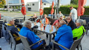 Zum Abschluss führte die Route zurück nach Liefering, wo wir uns zur Nachbesprechung beim Wirt versammelten. Gemeinsam ließen wir die Tour Revue passieren und feierten die erfolgreichen rund 60 Kilometer, die wir trotz des herausfordernden Windes gemeistert hatten.