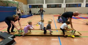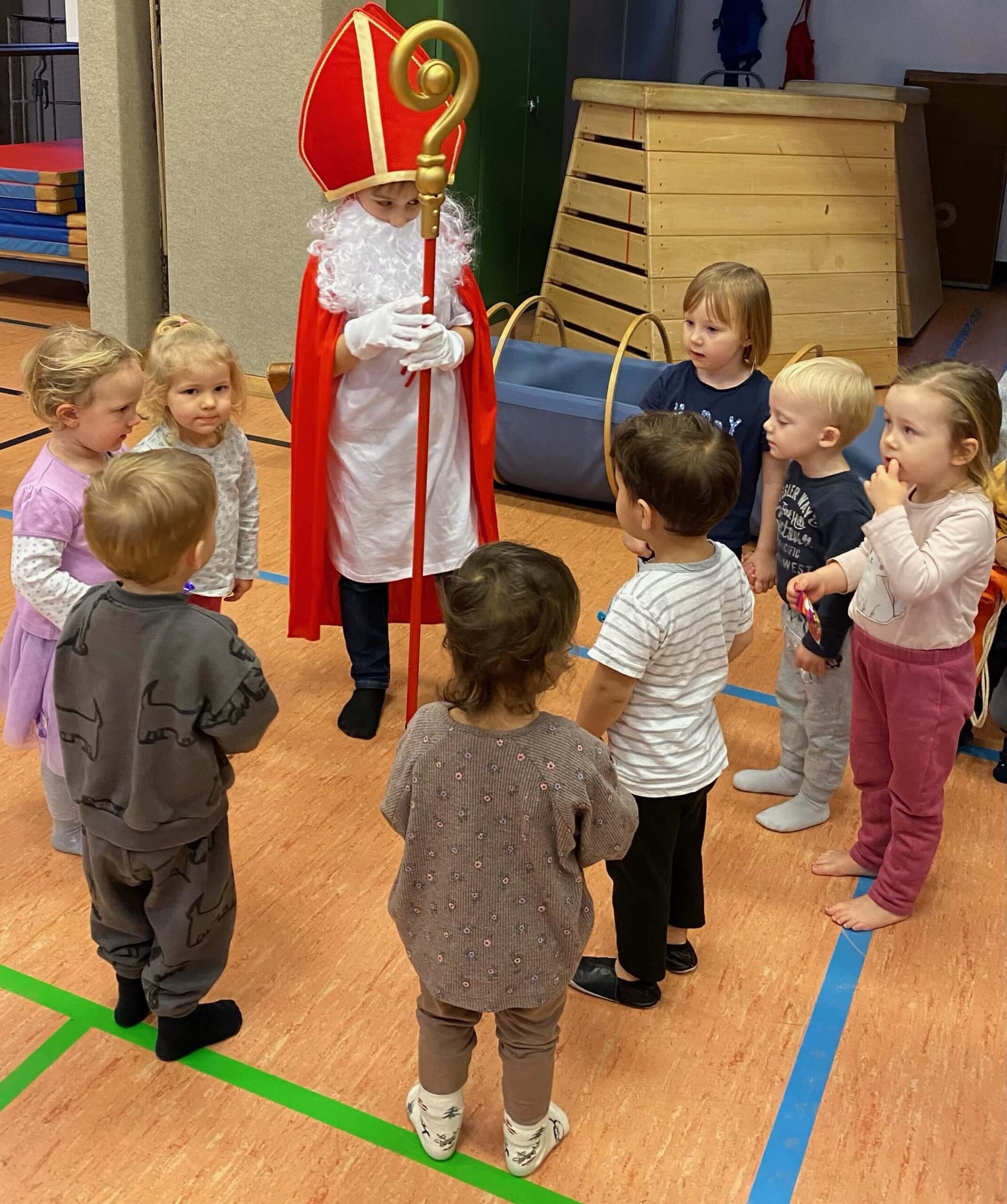 Der Nikolaus auf Besuch beim Eltern-Kind-Turnen